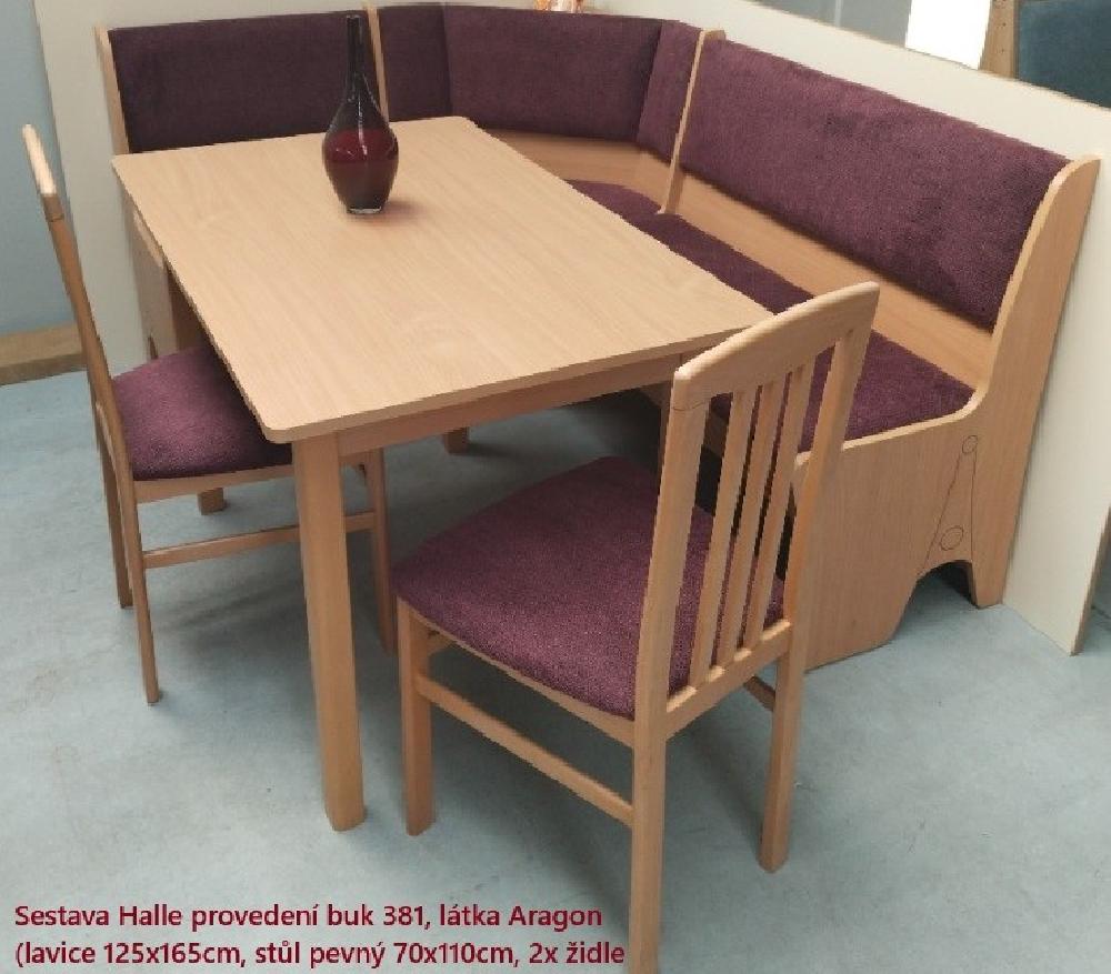 lavice 125x165cm, stůl pevný 110x70cm, 2xžidle Ringo