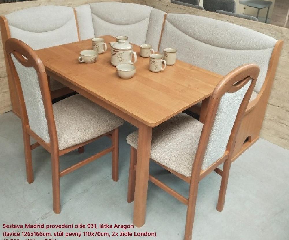 lavice 126x166cm, stůl pevný 110x70cm, 2xžidle London