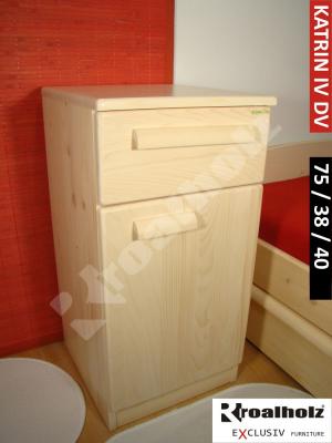 Komody a prádelníky jsou vyrobeny ze smrkového masivu a opatřeny povrchovou úpravou ekologickým zdravotně nezávadným lakem. Na pohledových stranách je použit výběrový materiál bez suků. Šuplíky jsou osazeny na kovové pojezdy s bezpečnostní pojistkou proti vypadnutí na podlahu. Komody a prádelníky jsou profesionálně zpracovány, a proto jsou dodávány smontované.