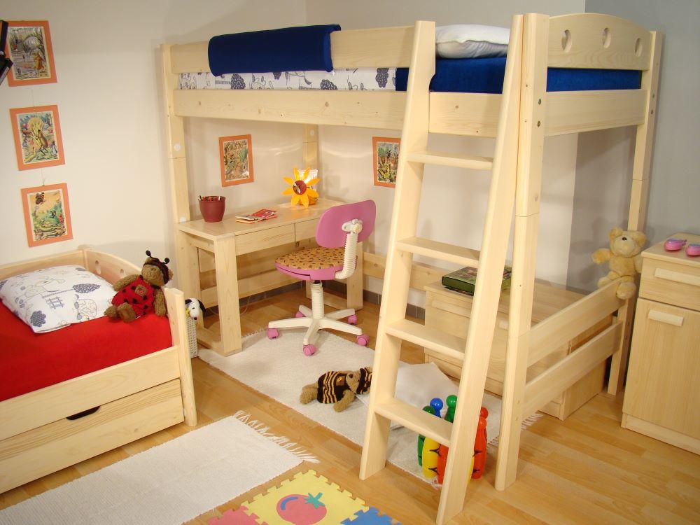 vysoká variabilní postel, kterou můžete dokoupením jednotlivých komponentů přestavět na libovolný typ palandy FIJA nebo naopak zase rozložit na 2 samostatné postele