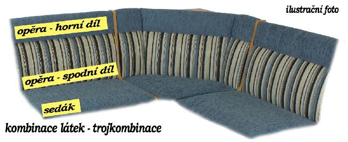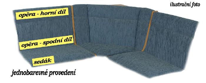 - výběr čalounických látek je z řady vzorů v provedení imitace kůže, imitace velurové usně nebo je velký výběr vzorů tkaných látek a jejich kombinací